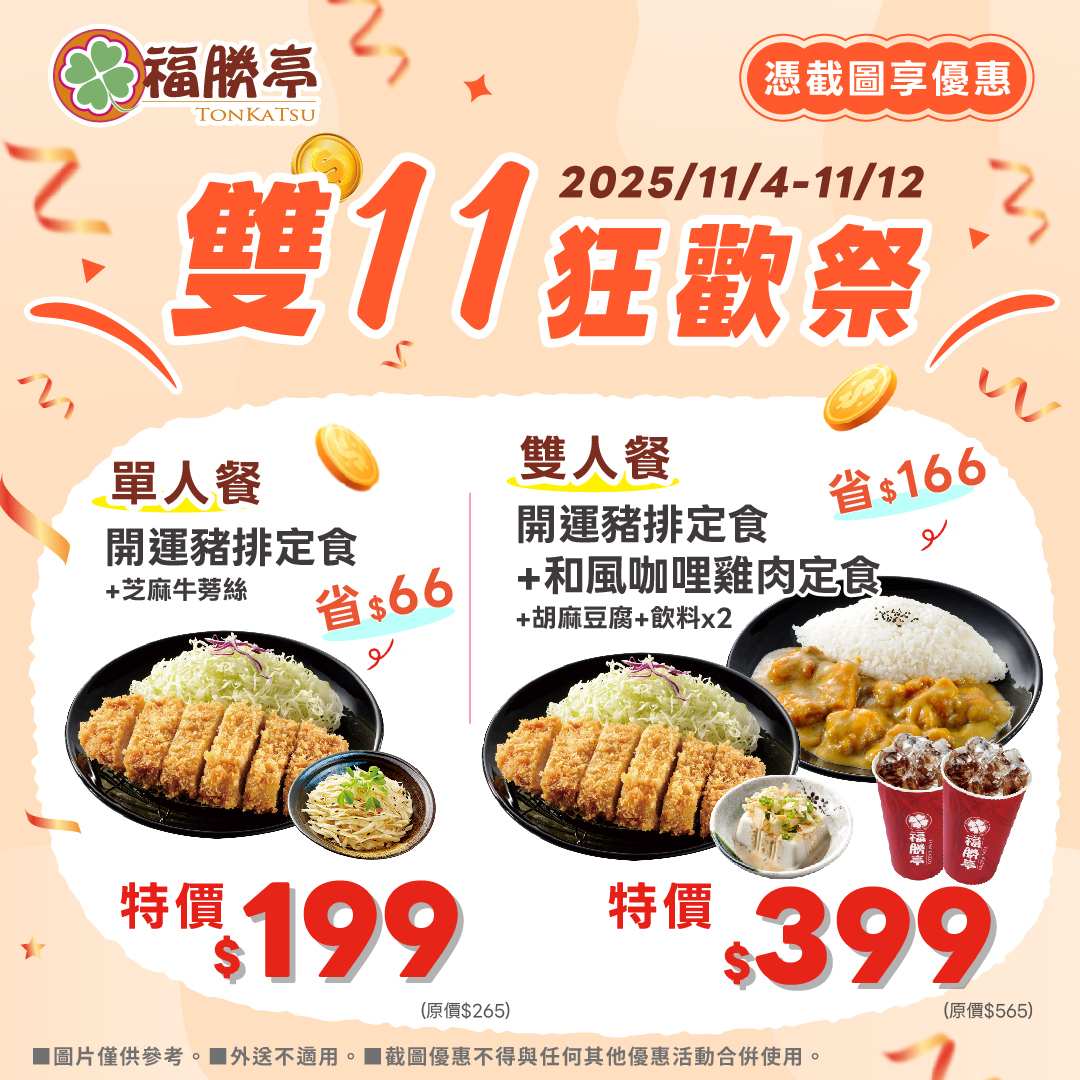 福勝亭 11/4~11/12 出示此活動截圖即享限定優惠!