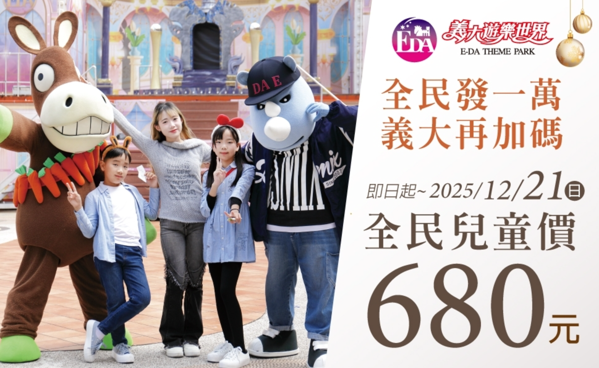 義大遊樂世界 即日起~12/21 全民享兒童價680元/人