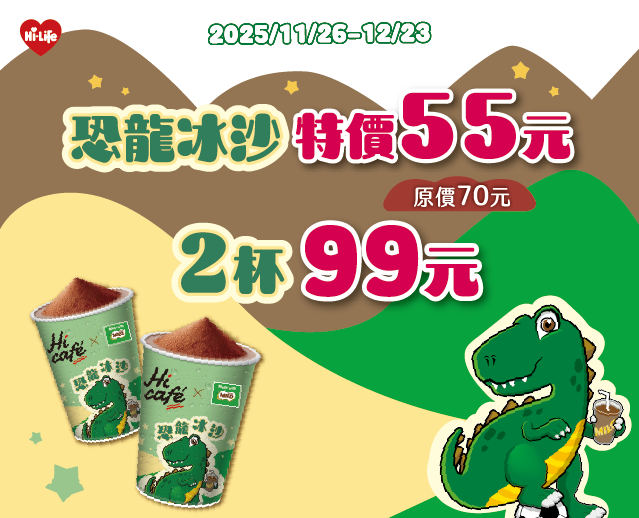 恐龍冰沙優惠中~ 特價55元 2杯99元!