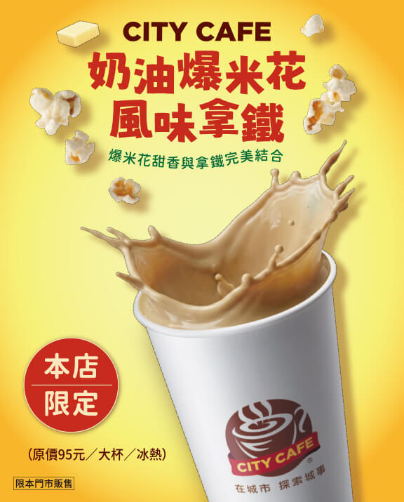 CITY CAFE 奶油爆米花風味拿鐵:點我查詢門市