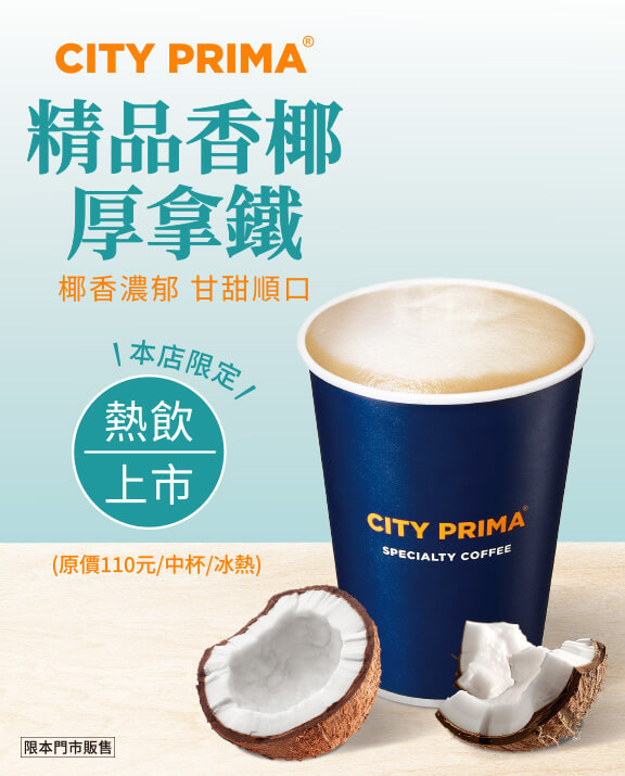 CITY PRIMA 精品香椰厚拿鐵(熱飲限定):點我查詢門市