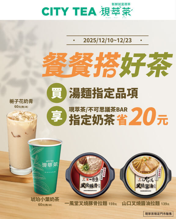 CITY TEA 餐餐搭好茶!買湯麵指定品項,享現萃茶/不可思議茶BAR指定奶茶省20元