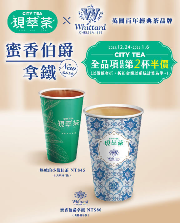CITY TEA x Whittard 蜜香伯爵拿鐵 暖心上市!CITY TEA全品項任選第2杯半價
