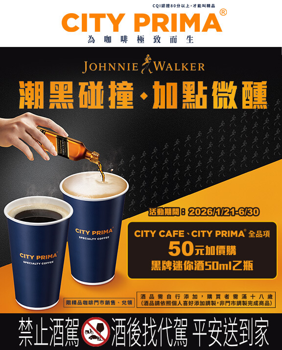 CITY CAFE、CITY PRIMA全品項+50元 加價購黑牌迷你酒50ml乙瓶