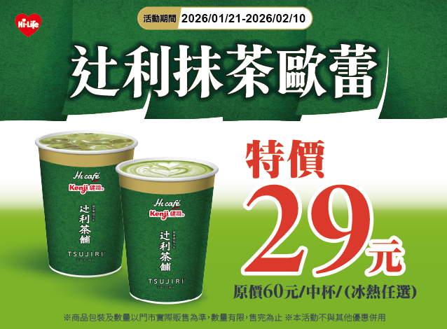 萊爾富 1/21~2/10 辻利抹茶特價29元