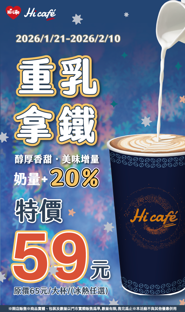 萊爾富 1/21~2/10 重乳拿鐵特價59元
