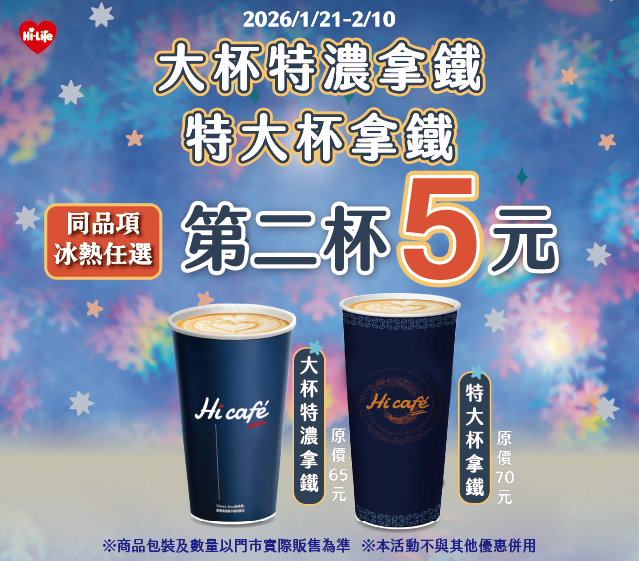 萊爾富 1/21~2/10 大特濃拿鐵 / 特大拿鐵 同品項第二杯5元