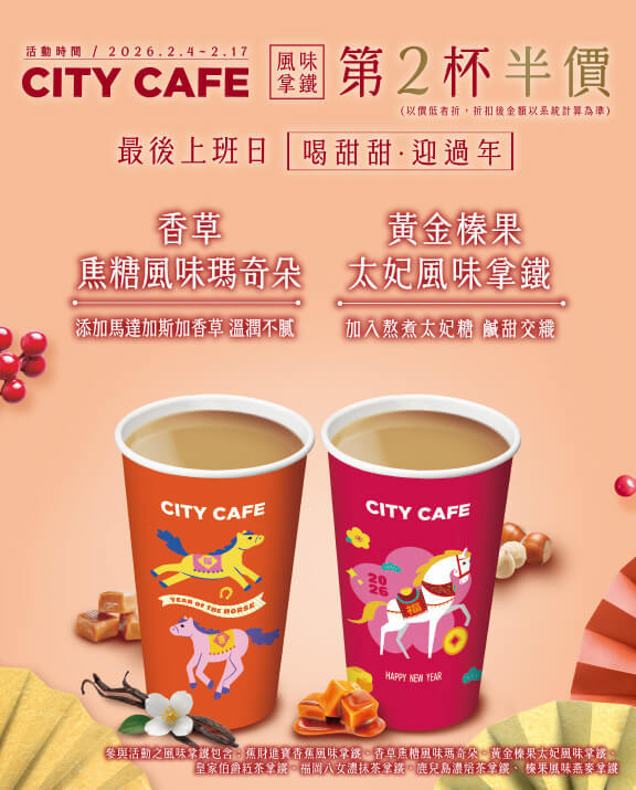 CITY CAFE 最後上班日 喝甜甜過好年!CITY CAFE風味拿鐵第2杯半價