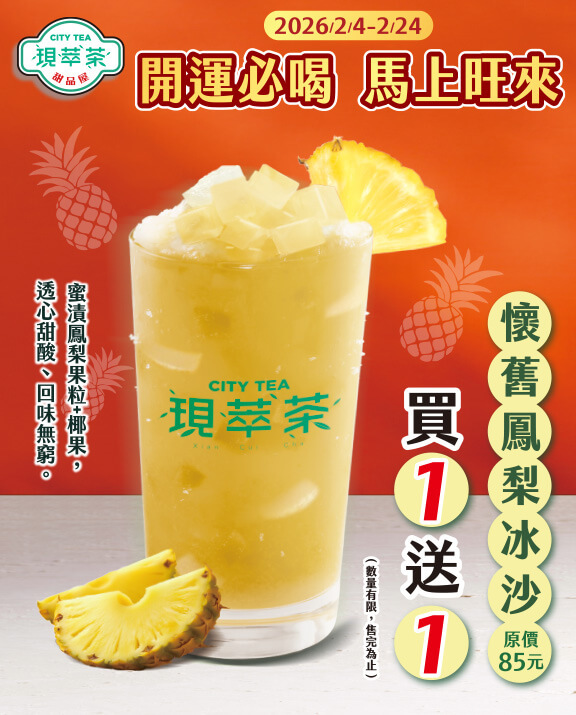 CITY PEARL 開運必喝 馬上旺來!懷舊鳳梨冰沙 買1送1 (原價85元)