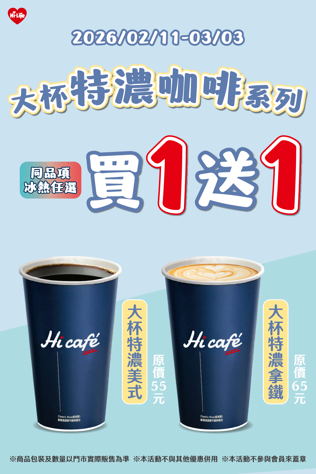 萊爾富 2/11~3/3 大杯特濃咖啡系列同品項買1送1
