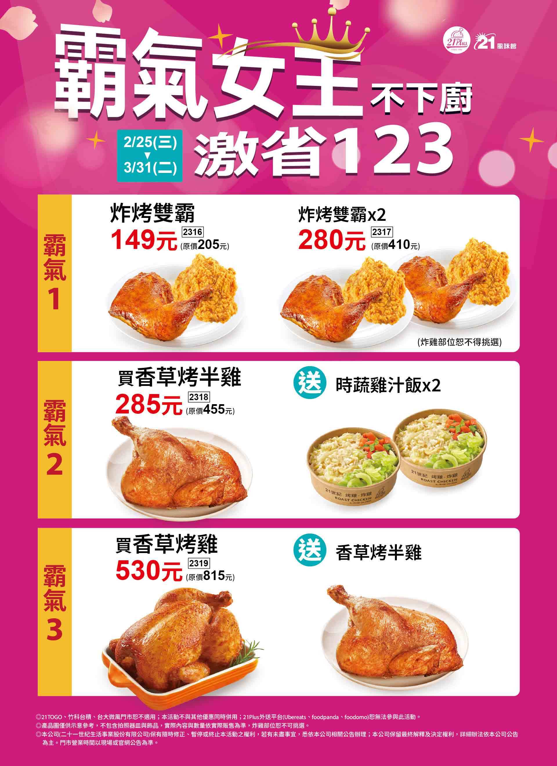 21世紀風味館 2/25~3/31 指定組合優惠:買香草烤雞送香草烤半雞