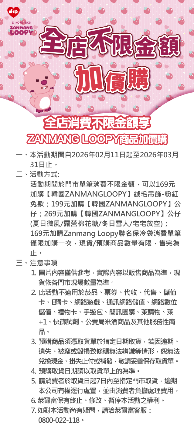 2026/03/04~2026/03/31 LOOPY商品全店不限金額加價購!