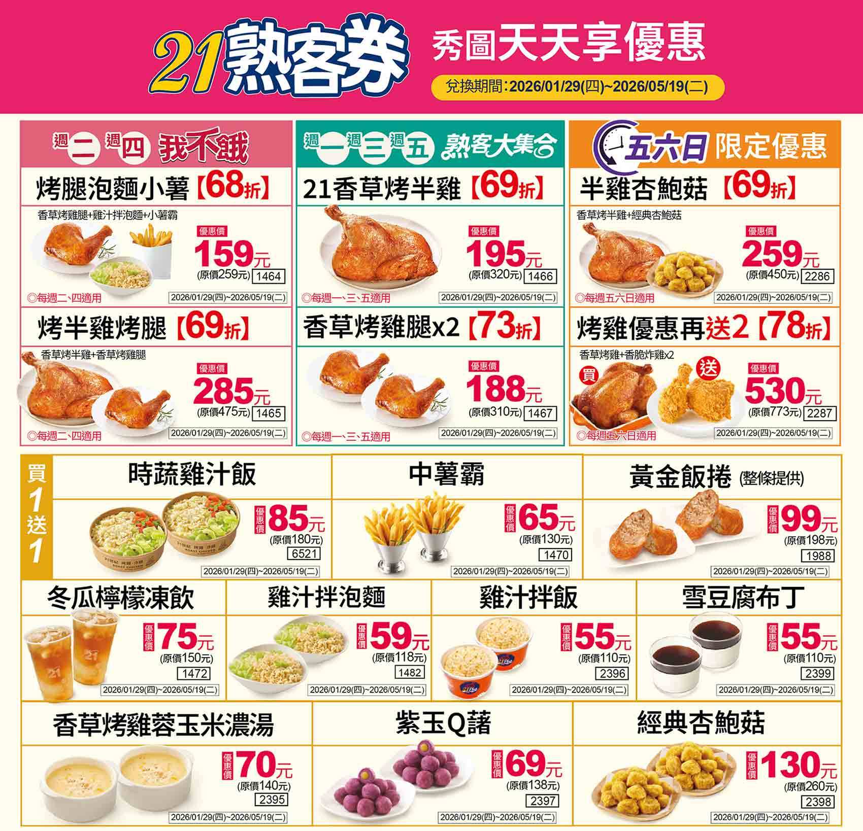 半雞菇菇餐敲碗回歸、香草烤雞買1送2爽爽吃
