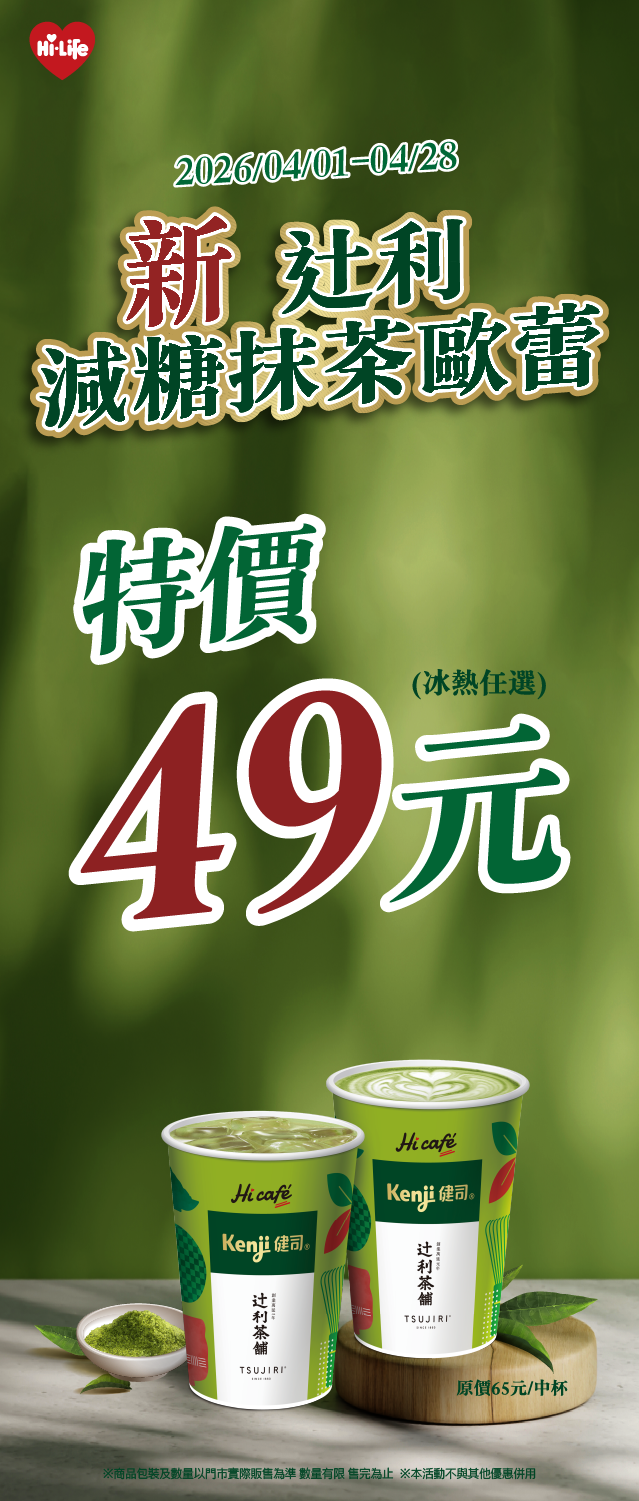 減糖版的十利抹茶歐蕾來囉! 限時優惠特價49元,快來嘗鮮~
