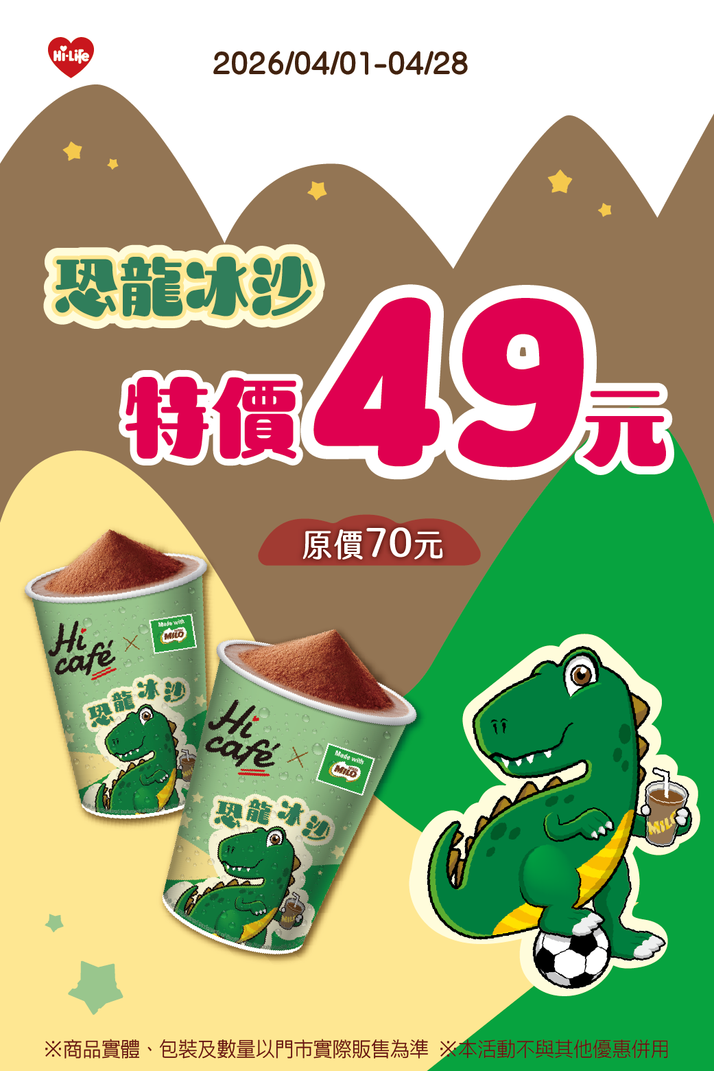 好康優惠看過來~ 恐龍冰沙特價49元!