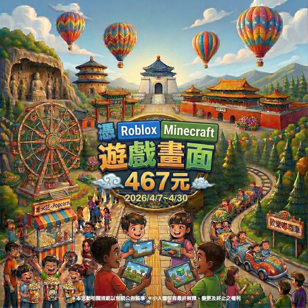 小人國主題樂園 4/7~4/30 本人主動出示 Roblox 或 Minecraft 之行動裝置遊戲畫面,即享優惠價 467 元。