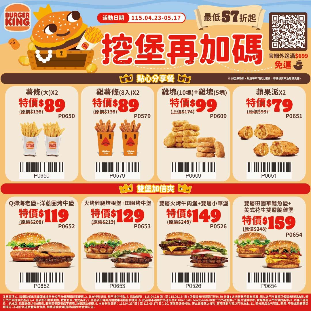 適用時間:2026/4/23~2026/5/17,正餐販售時間至打烊前30分鐘 (各店販售時間有差異,請以各門市實際正餐販售時間為準)