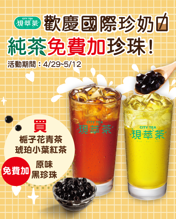 歡慶國際珍奶日,純茶免費加珍珠!