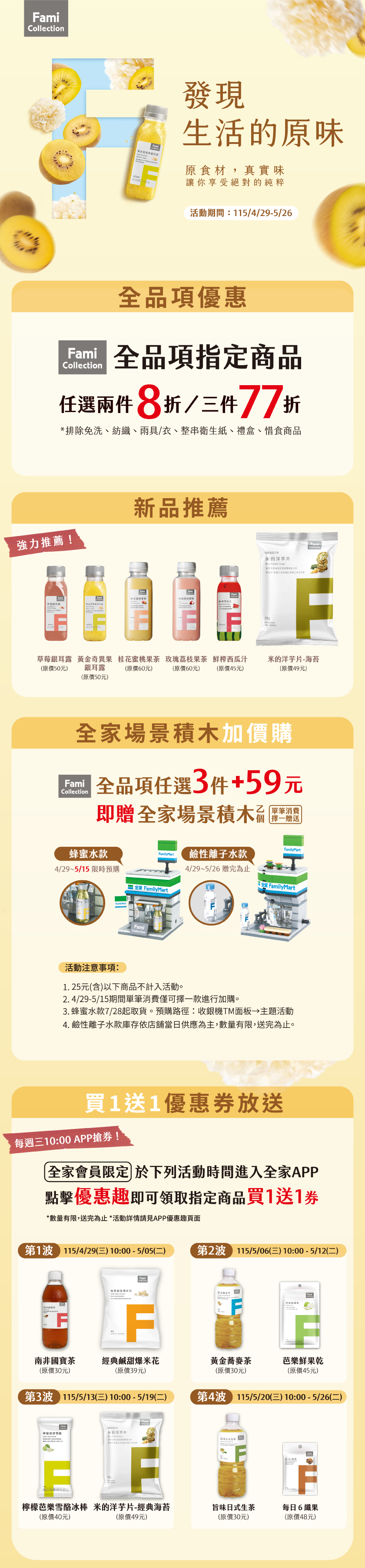 全家便利商店 4/29~5/26 Fami Collection全品項指定商品任2件8折,3件77折