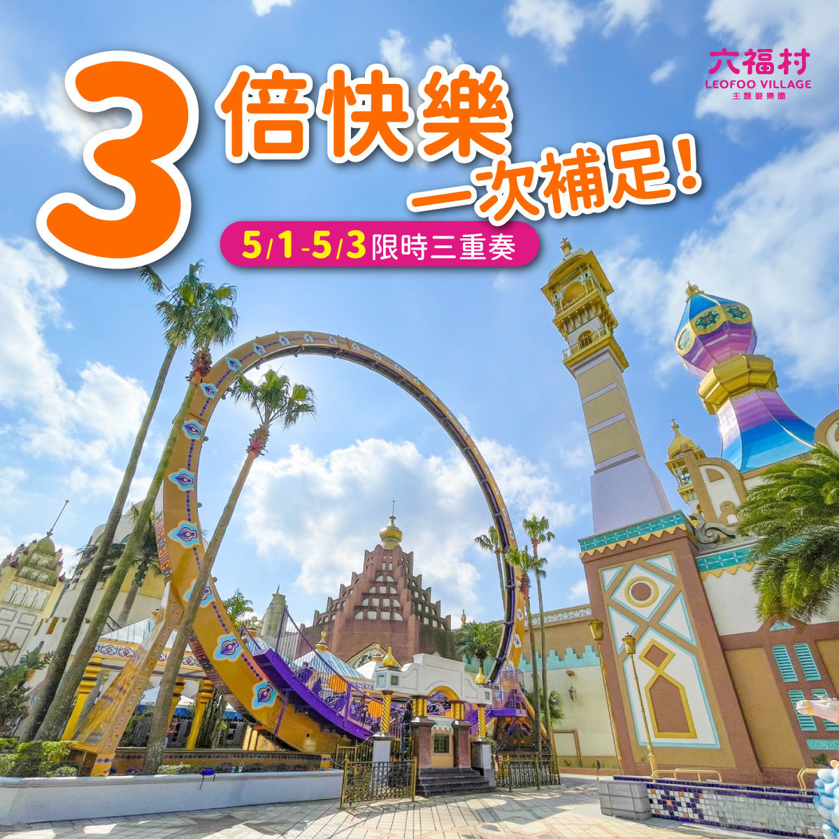 六福村 5/1~5/3 5月壽星免費入園、著紅色上衣現場購票$599(親友$799)、桃竹鄉親限定優惠$599