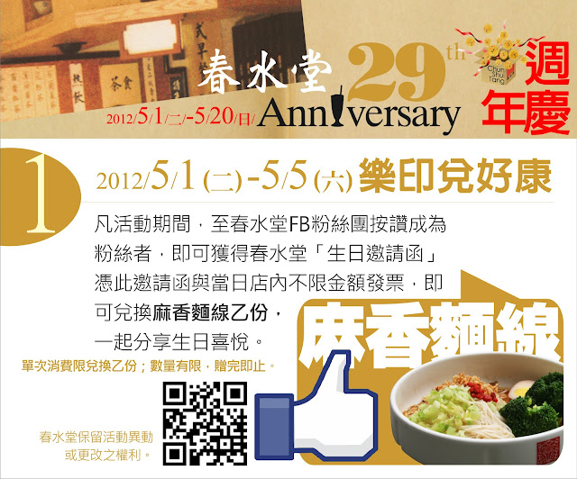 5/1~5/5到春水堂粉絲團按讚 消費再送麻鄉麵線 (已過期)