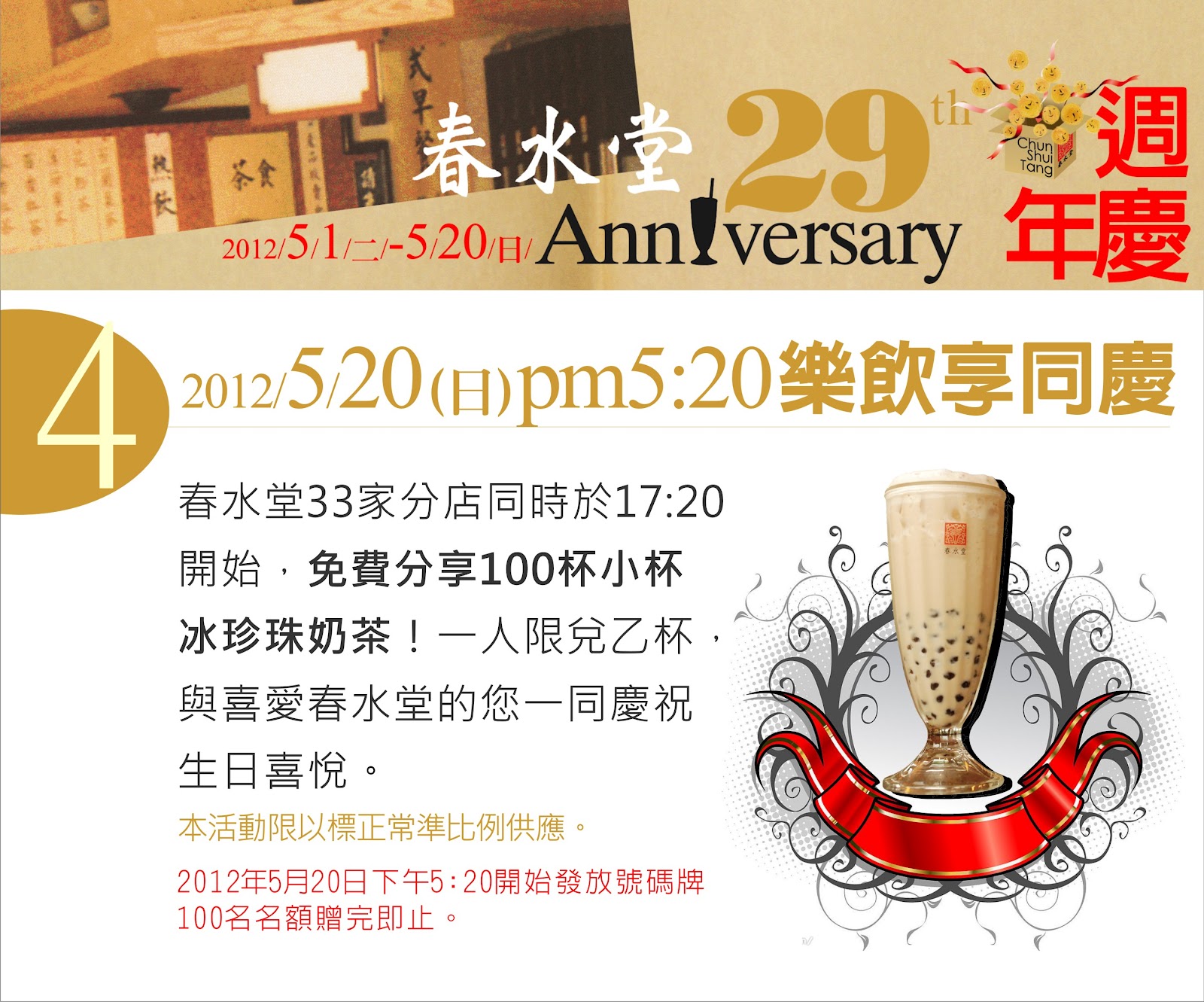 5/20 下午17:20 春水堂免費分享100杯小杯冰珍奶
