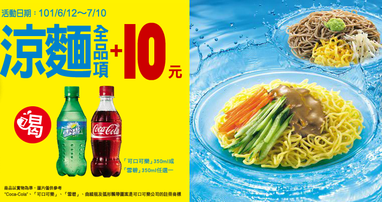 全家超商 6/12~7/10涼麵全系列+10元喝可樂或雪碧 (已過期)